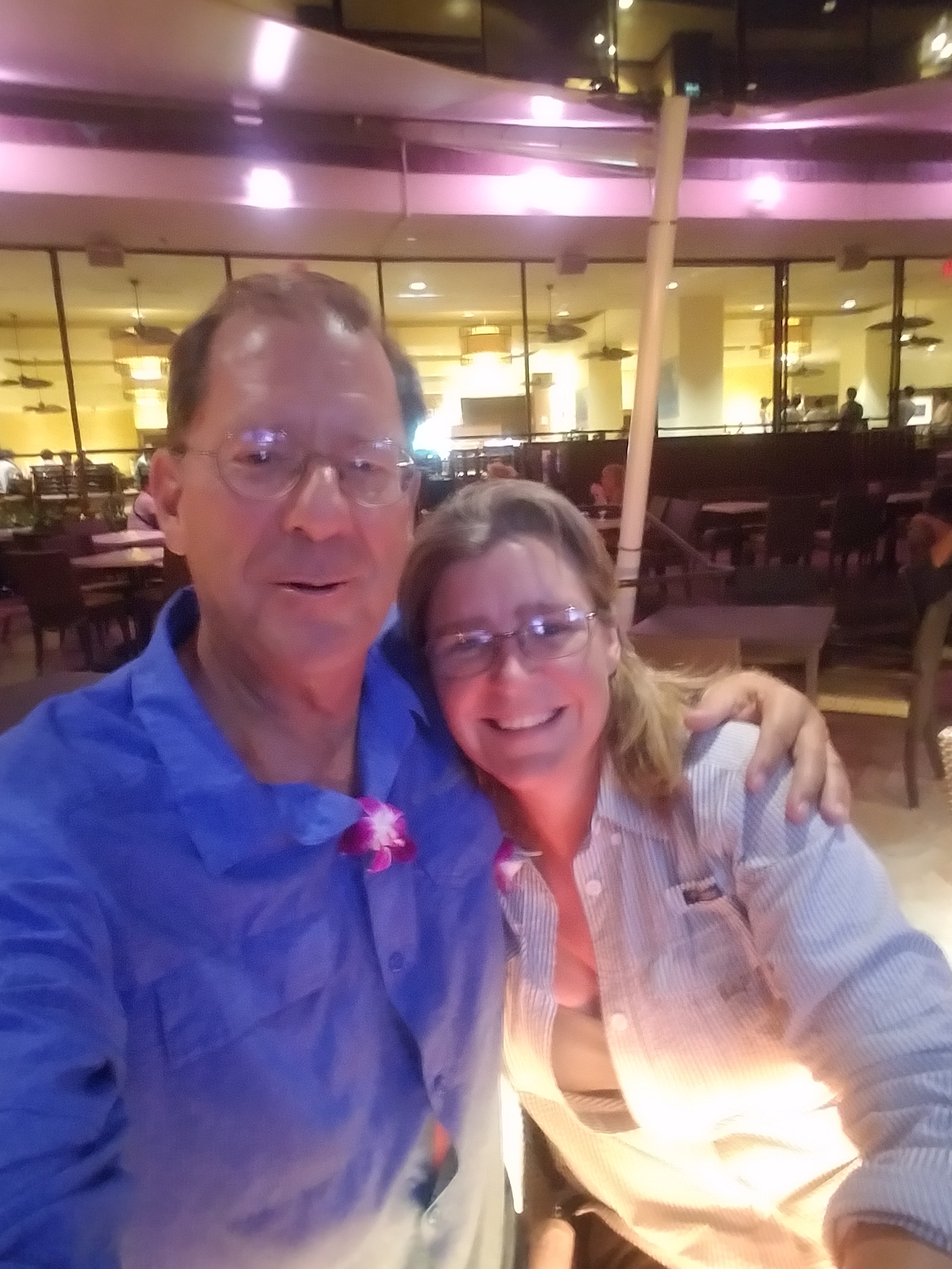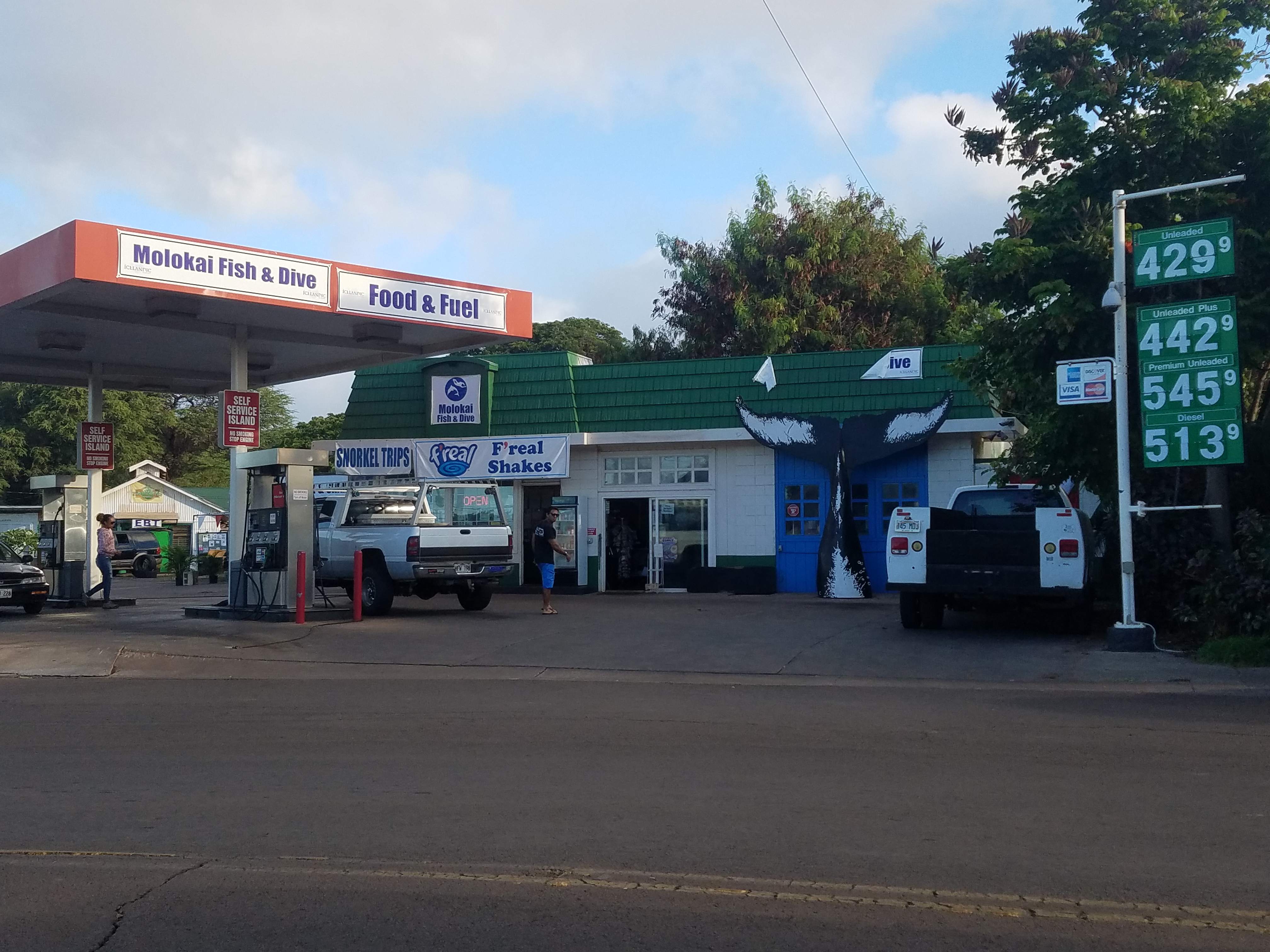 While we were in Moloki, and old tennis friend called me out of the blue, and asked if I was back from Hawaii yet. I said no, we were still in Hawaii, on the island of Moloki. He said, I have an old friend who lives on Moloki, you have to look him up, he owns a gas station near the harbor. I went to the two gas stations in the town of Kaunakaki, and learned that Ed had sold his station, and retired, but his wife was working in a credit union. The lady at the gas station said, just go talk to her, she will give you Ed’s number. So I did; I found her, and she was friendly and interested and said she would tell Ed about my visit. An hour later, they called and invited us to dinner at the local pizza place. We connected on many levels. Ed was born on Moloki, but grew up in the East Palo Alto, and worked for HP, and we had common friends, so the conversation flowed easily. We both had plans for the next day, but agreed to have breakfast the following day, Saturday, at the Bakery. After breakfast, they drove us around the island. They took us to the overlook and the clouds cleared long enough so we could see the peninsula on the north side where the old Leper Colony was housed, and to a beach with an old peer with good snorkeling (we went there the next day). The dialog was strong enough that we met for dinner that night, at the Cookhouse. We spoke about the economics of life on the island, ranch that owns 60% of the island, the failed Sheraton resort, barges and ferries (the one ferry will shut-down next month), and the several businesses that Ed had started on the island. He created about 50 jobs on Moloki. Ed and his wife made our stay in Moloki a much deeper and satisfying experience.